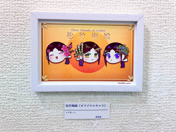 普段は老若男女人外問わずキャラクターを描くのが好きですが、今回の展示はこれまで自作品として作ったマスコット的ミニキャラや、決めたモチーフで自分流に擬人化したミニキャラを一斉に出させていただきました。