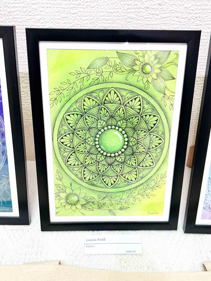 Fumizo:数年前に体調を崩し、ほぼ毎日自宅で過ごすようになりました。家族以外との接触がほとんどなく孤独感を感じていた時、曼荼羅アートに出会いました。自分なりに円の中に幾何学模様や好きな植物などを無心で描いているうちに、孤独感から解放されていったように感じました。そして次第に自分なりのスタイルができてきて、現在に至ります。